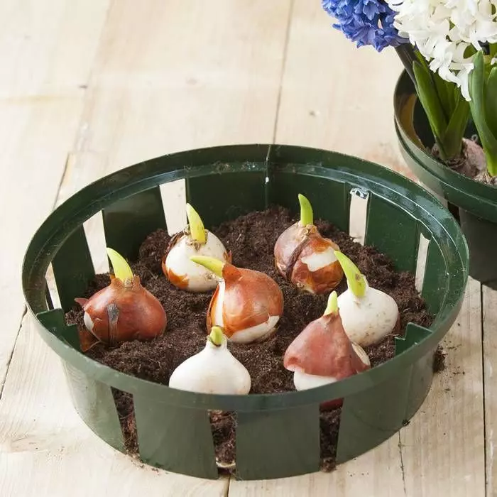 Set van drie ronde mandjes. Ideaal om de te groeperen en samen te planten. Aan het einde van het seizoen de bloembollen opgraven en binnen bewaren.