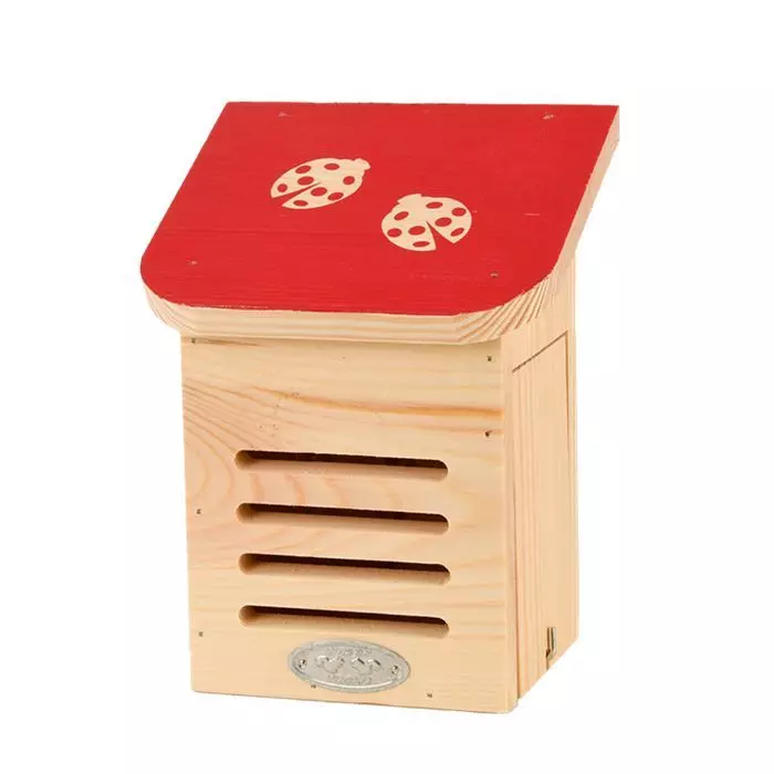 Lieveheersbeestjes zijn, naast een plezier om naar te kijken, zeer nuttig gasten in de tuin. Een volwassen lieveheersbeestje eet wel 100 bladluizen per dag, dit huisje biedt onderdak en beschutting. Het huisje is zo ontworpen dat lieveheersbeestjes hier gemakkelijk toegang tot hebben en worden concurrenten en roofdiertjes buiten gehouden .Om het lieveheersbeestjes helemaal naar de zin te maken, kunnen losse bladeren of een rolletje golfkarton in het huisje worden gestopt.