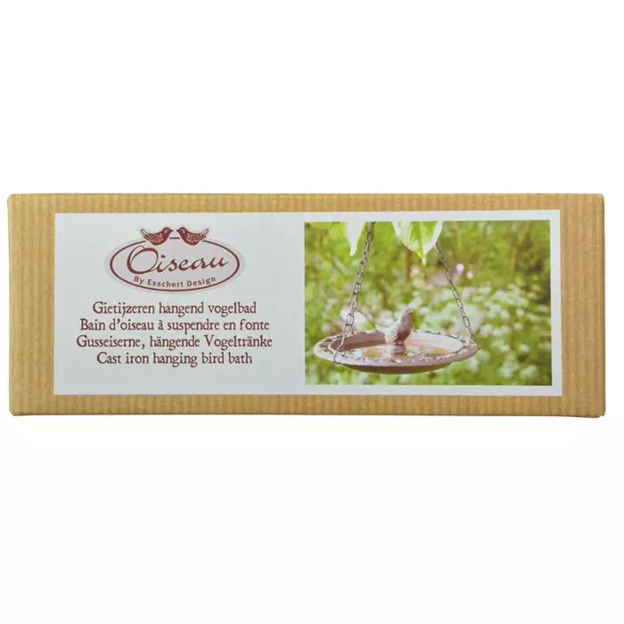 Dit gietijzeren hangende vogelbadje met een decoratieve vogel zorgt voor een fijne drink en badderplaats voor vogels. In de wintermaanden kan het vogelbadje ook gebruikt worden om voer in te plaatsen, zodat vogels gemakkelijker voer kunnen vinden. Dit vogelbadje is verpakt in een mooie geschenkverpakking.