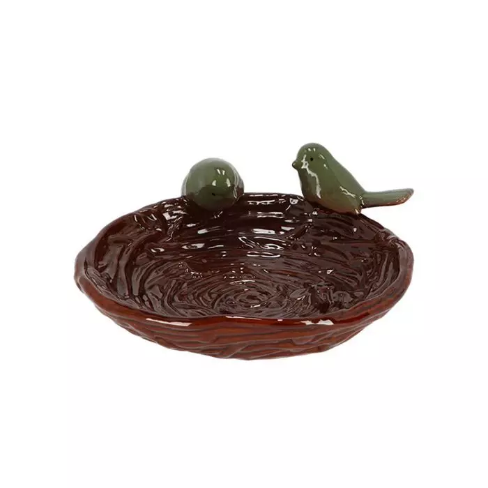 Dit nestvormige vogelbad biedt de vogels twee keer plezier. Het bad is zowel een drinkplaats als ook een badgelegenheid.
