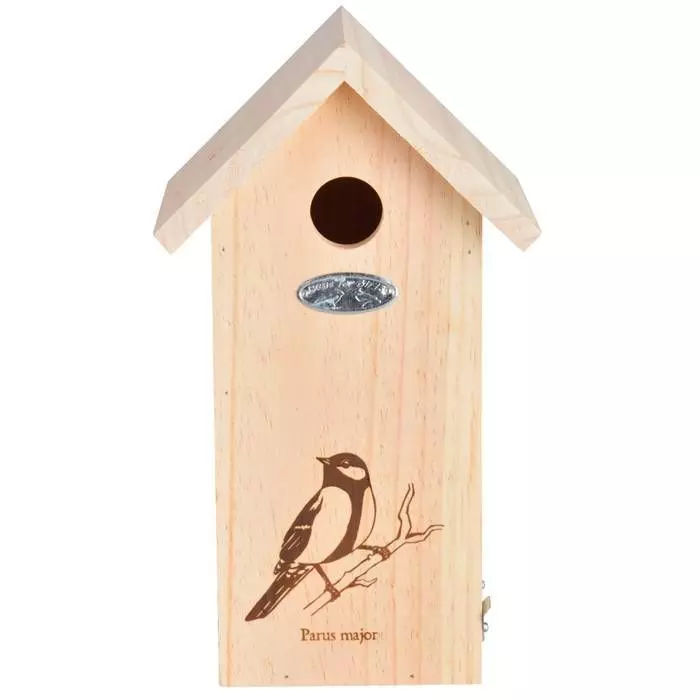 Nestkast met koolmees silhouet. Deze nestkast is geschikt voor de koolmees. Behalve de koolmees kunt u ook de pimpelmees, de ringmus en de bonte vliegenvanger in deze kast verwachten. In de winter bewijst de kast vaak goede diensten voor de vogels om te schuilen tegen het barre weer.