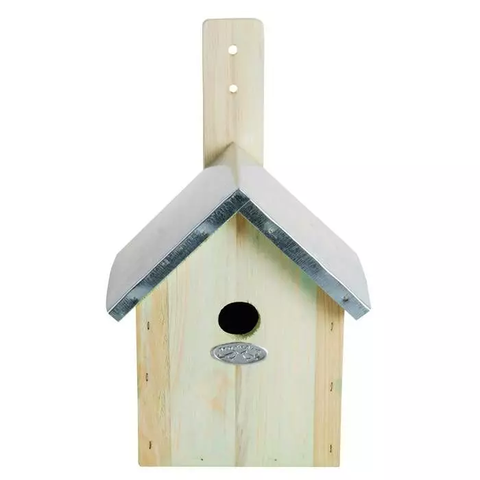 Kleine nestkast voor onder anderen de pimpelmees, met zinken dakje.
