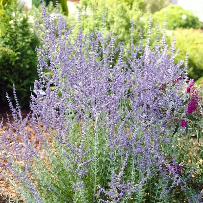 Haal de Perovskia Blue Spire uit de pot en ontwar de wortelkluit enigszins, zodat de wortelen naar buiten kunnen groeien en niet in de vorm van de kweek pot blijven groeien. Hierdoor zal hij bij droogte beter water op kunnen nemen. Wanneer u de wortelkluit 10-12 uur voor het planten in een emmer water laat weken, geeft u de plant een voorsprong. Als u de plaats bepaald heeft waar u de plant wilt planten, graaft u een gat, zodanig diep dat de gehele kluit van de Perovskia Blue Spire net onder het aardoppervlak blijft. Vermeng de aarde in het plantgat met wat potgrond, zodat water goed vastgehouden wordt, maar overtollig water wel wegloopt.Plaats de plant met gespreide wortelen in het plantgat en vul de aarde aan. Geef goed water en druk daarna stevig aan. Na 4 weken geeft u een handje organische mest boven op de aarde rond de Perovskia Blue Spire.