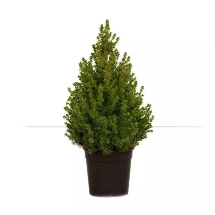 De traditionele kerstboom op pot die na de kerst ook in de tuin geplant kan worden.