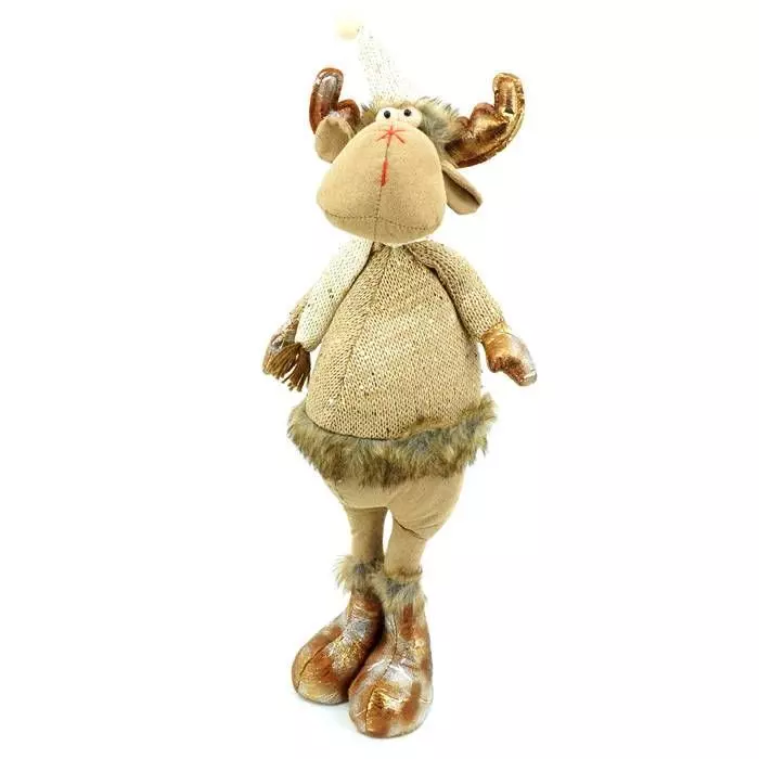 Breng gezelligheid aan uw interieur met deze schattige staande rendier. Hij is bruin en goud van kleur en draagt een glittertrui, sjaal en hoed. Alleen bedoeld voor decoratie, het rendier is niet bedoeld als speelgoed. Prachtige kerstversiering voor de feestdagen. Ook erg leuk als cadeautip.